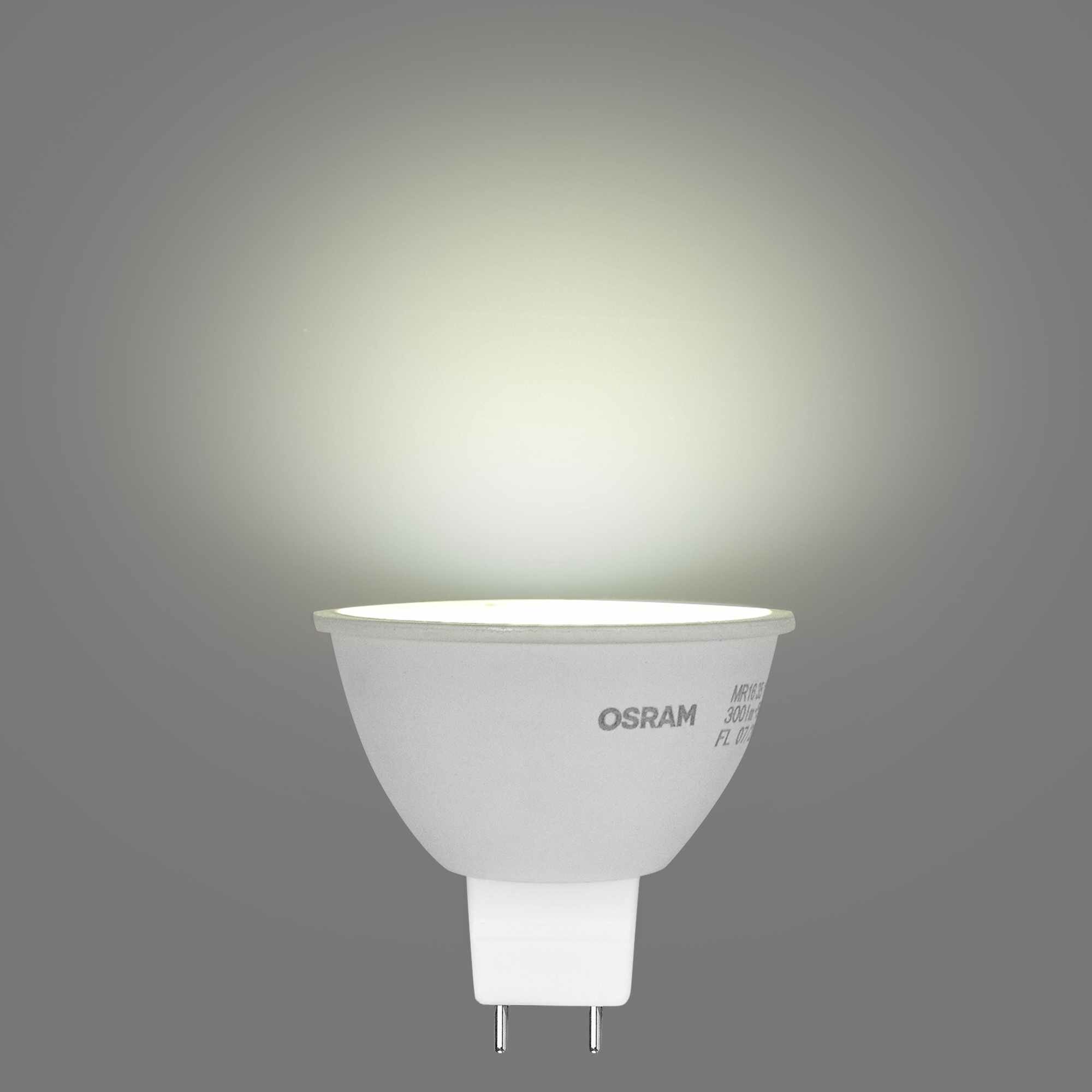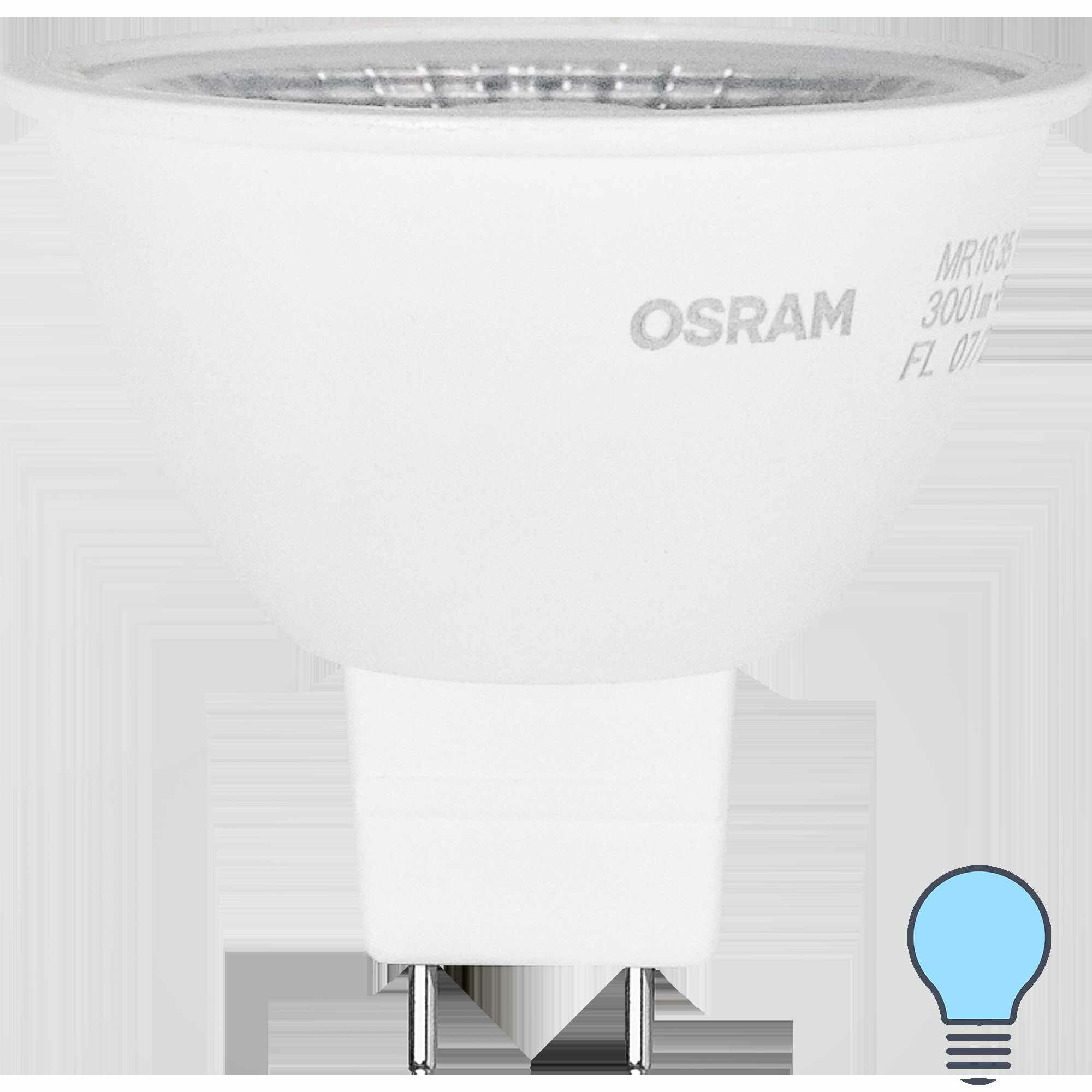 Лампа светодиодная OSRAM LED Star MR16, 300лм, 4Вт , 5000К (нейтральный белый свет), Софит, Цоколь GU5.3