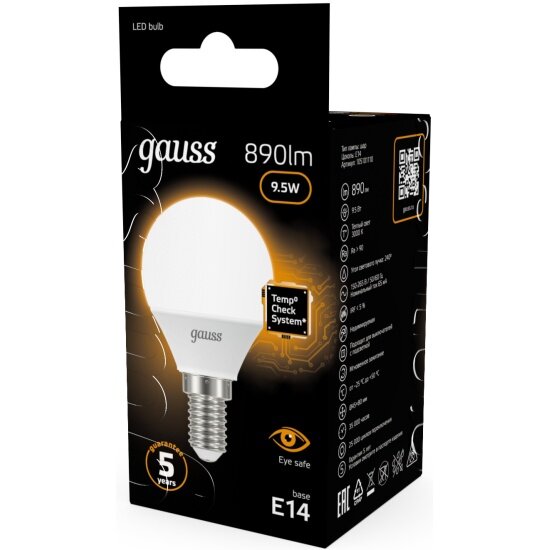 Светодиодная лампа Gauss LED Шар E14 9.5W 890lm 3000K (упаковка 10 шт.) интересное: