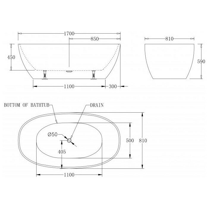 Акриловая ванна без перелива BELBAGNO BB81-1700-W0