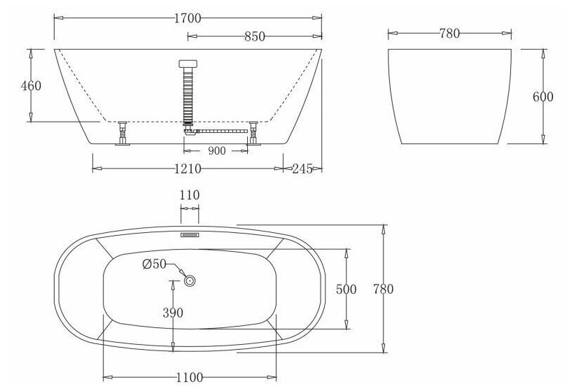 Ванна акриловая отдельностоящая без перелива BelBagno BB72-1700-W0