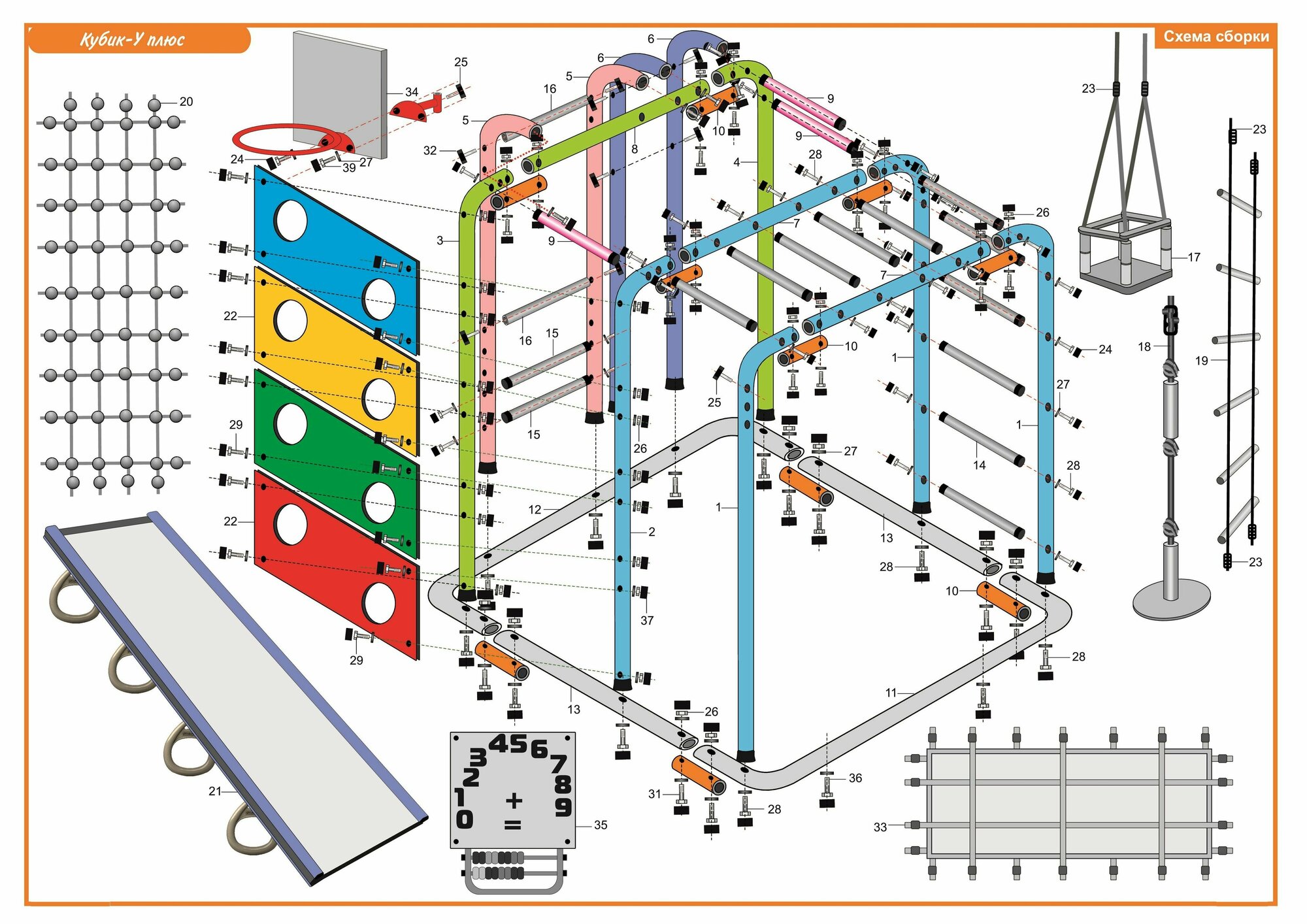 Напольный комплекс Кубик У Плюс - Оранжевый-радуга