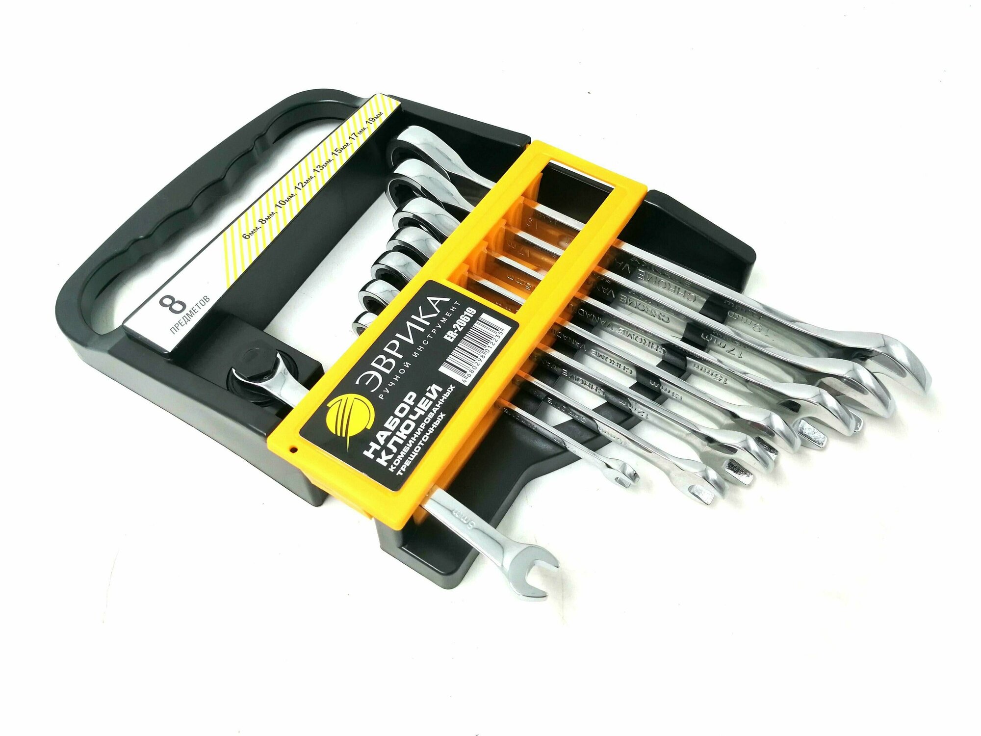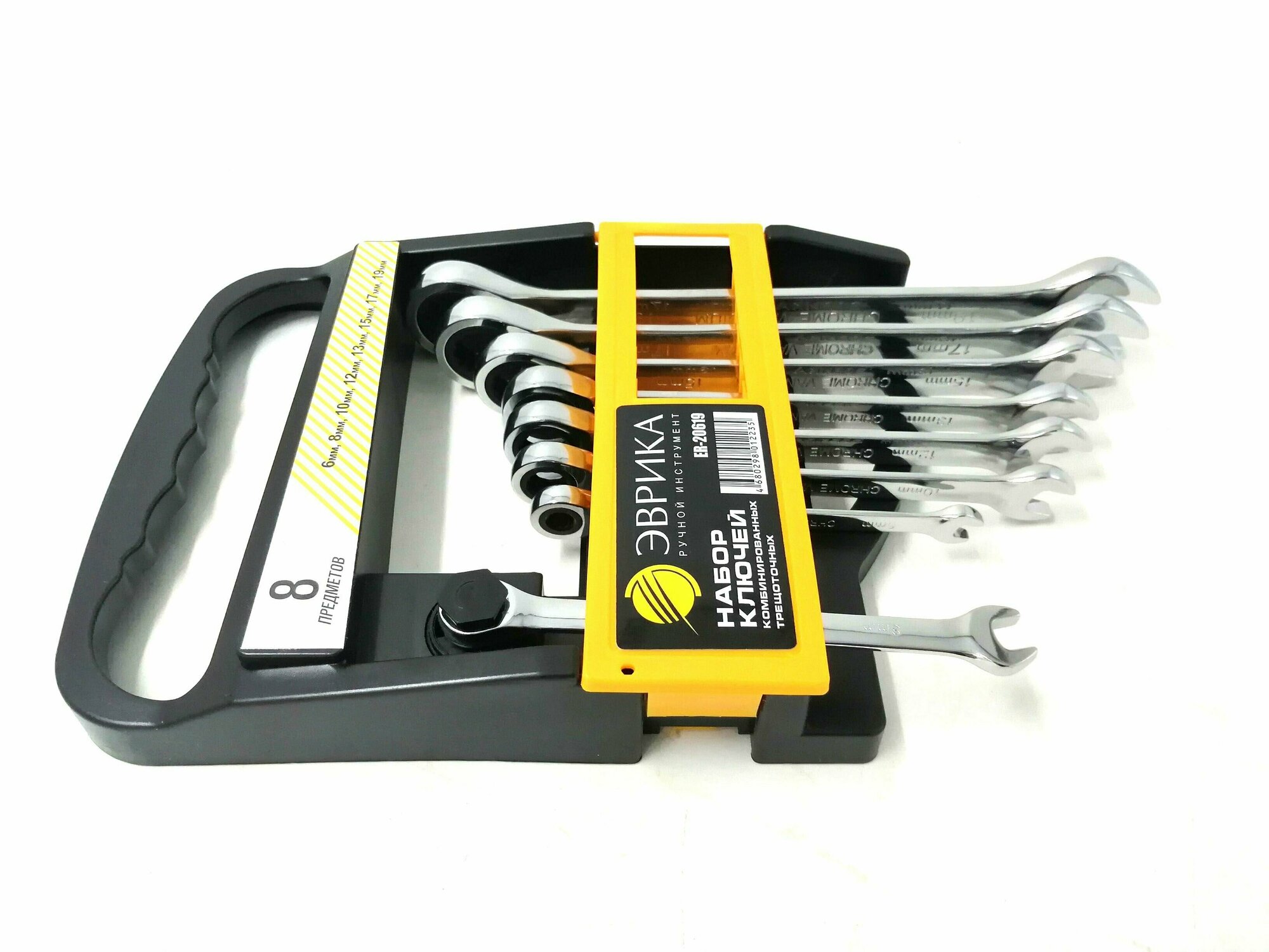 ER20619 эврика Набор ключей комбинированных 6-19мм трещоточных 8 предметов в холдере эврика