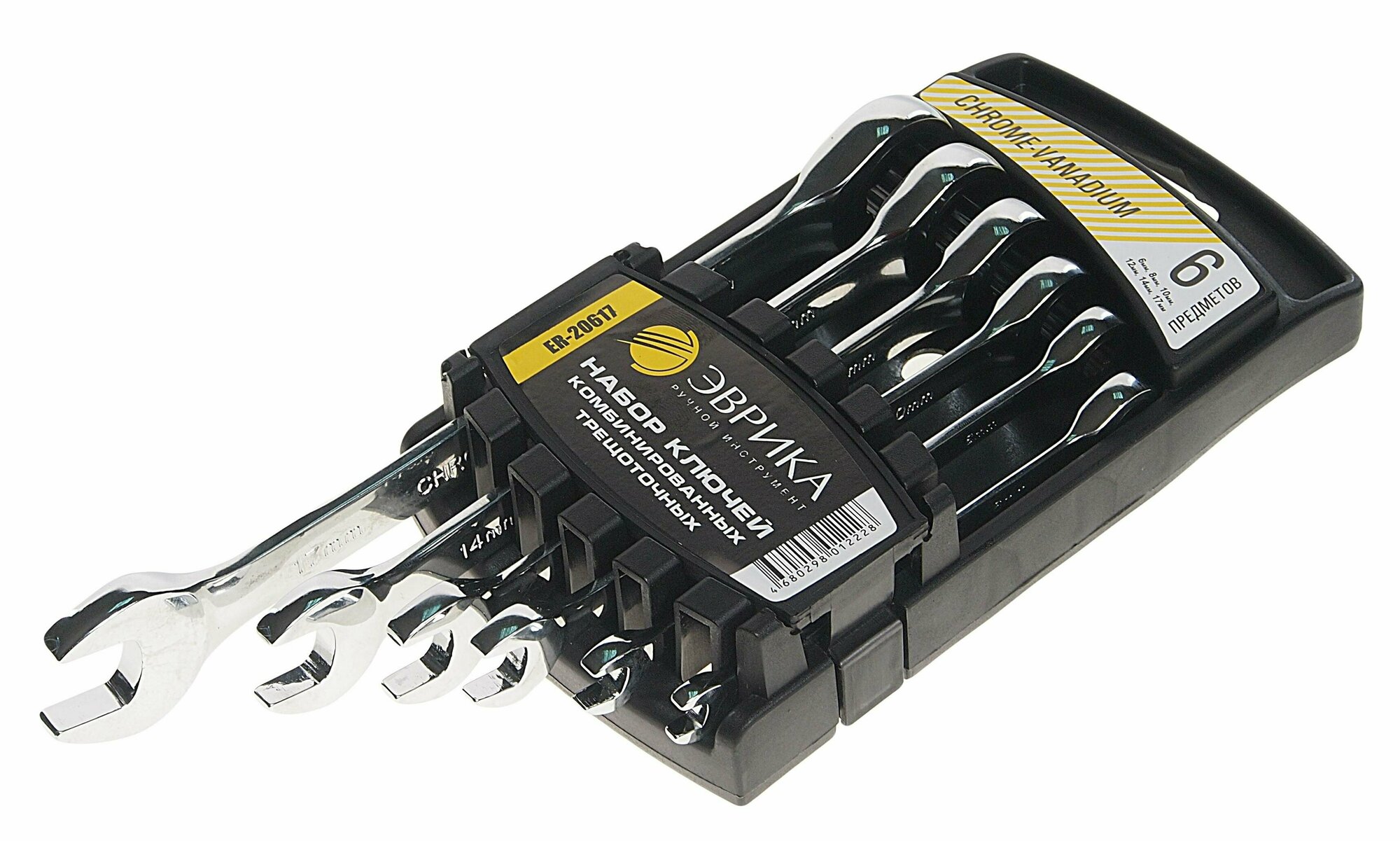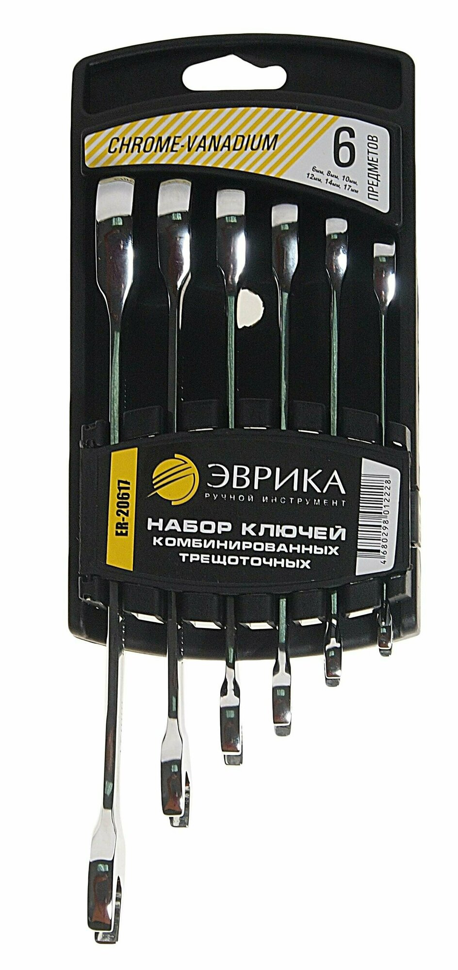 Набор ключей комбинированых ER-20617 трещоточных 6 предметов 6,8,10,12,14,17мм (на держателе) эврика