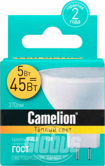 Camelion MR16 GU5.3 12V 5W(370lm 100°) 3000K 2K матов. 49x50 пластик LED5-MR16/830/GU5.3 (арт. 524507) интересное: