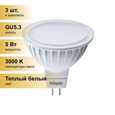 Лампа светодиодная Navigator теплый белый свет 5Вт 94262 NLL-MR16-5W-12V-3000K-GU5.3