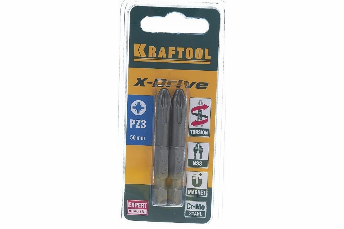 Биты ″X-DRIVE″, PZ3 x 50 мм, торсионные кованые, обточенные, KRAFTOOL, 2 шт. (26123-3-50-2)