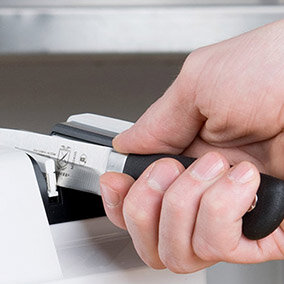 | Плюсы: | Соответствие ожиданиям. Просто все так, как должно было быть. Достаешь из коробки, ставишь на стол, несколько раз проводишь ножом. Готово. Не нужно никакого умения, сложно сделать что-то не так. Никакой стружки или металлической пыли. Работает тихо. |