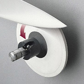 Диски защищены пластиковой вставкой ( белого цвета ) закрывающей слот с алмазным диском в целях безопасности потребителя. Заточка ножей очень простая и требует какого-либо навыка. Магнит-уловитель для металлической стружки. |