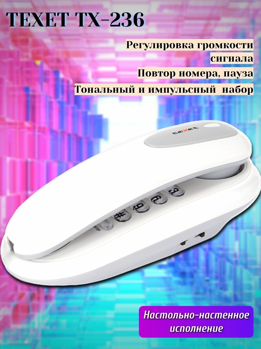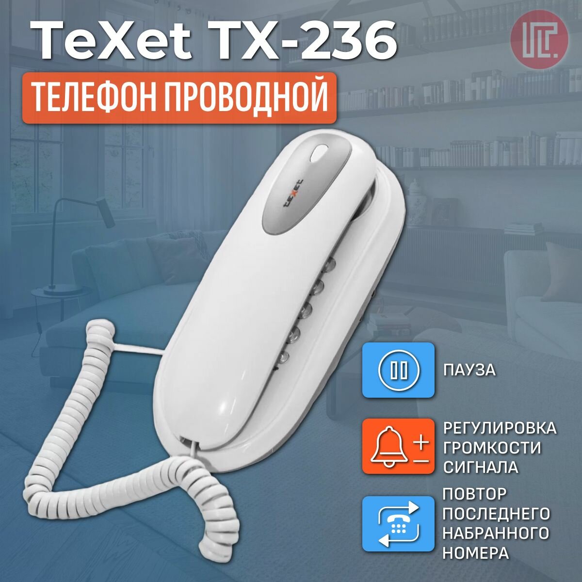 Телефон проводной teXet ТХ-236, повторный набор, компактный размер, светло-серый ( Артикул 337863 )