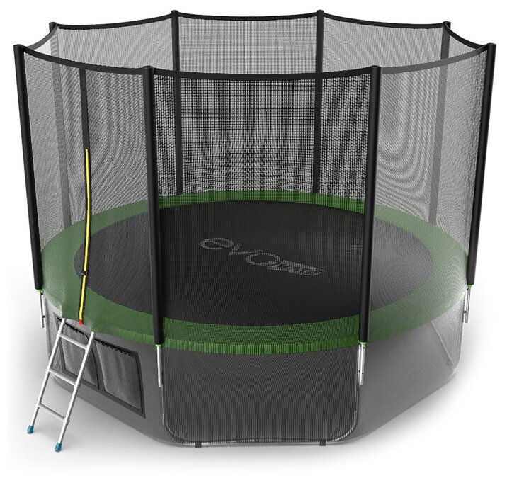 Купить Батут EVO JUMP External 12 ft, d=366 см, с внешней защитной сеткой и лестницей + нижняя сеть, зелёный