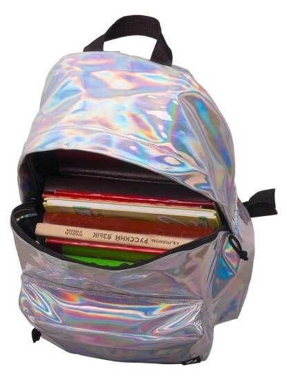 Рюкзак BRAUBERG GLOSSY универсальный, блестящий, серебро, 41×32×14 см, 226421
