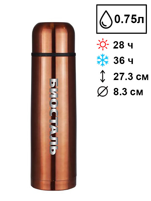 Биосталь Термос Вакуумный, Крышка-чашка, "Античная Бронза" 0,75 л.