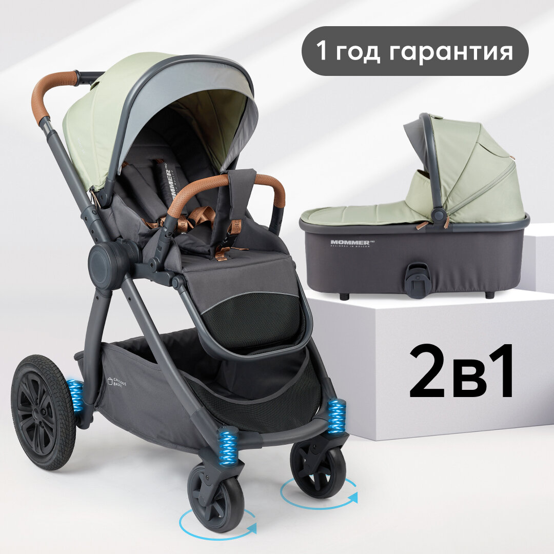 Коляска два в одном "MOMMER PRO", оливковая