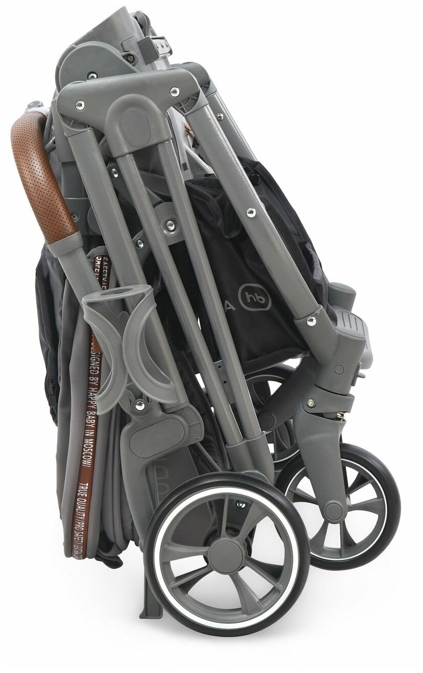Коляска прогулочная детская Happy Baby LUNA, съемный бампер, капюшон, дождевик, москитная сетка, коричневая обивка, черная ручка