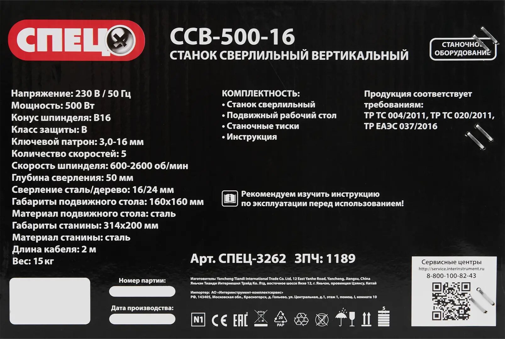 Купить Станок сверлильный Спец ССВ-500-16, 500 Вт, 16 мм