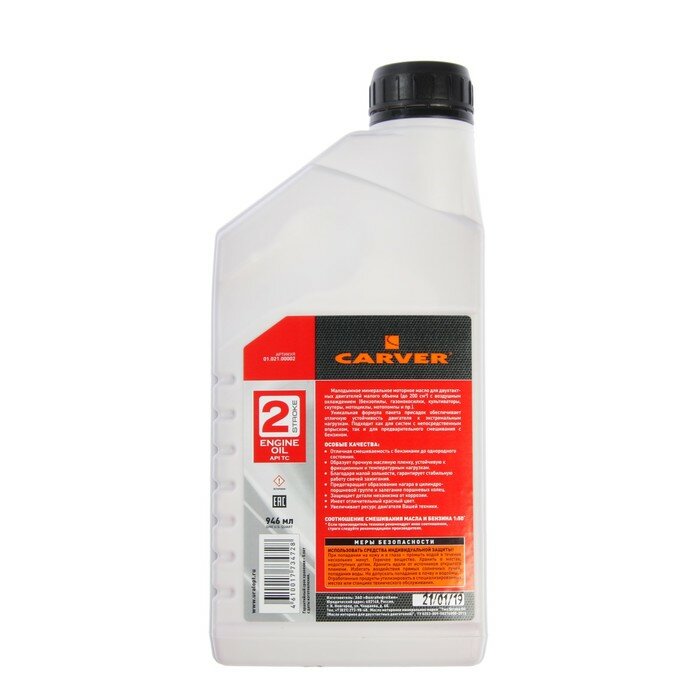 Купить Масло Carver 2 Stroke Engine oil API TC, для двухтактных двигателей, минеральное, 0.946 л. В наборе 1шт.