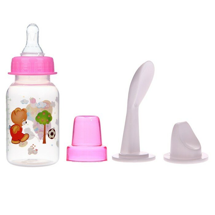 Бутылочка для кормления 3 в 1, в комплекте ложка и носик-поильник, 125 мл, от 0 мес., цвета микс интересное: