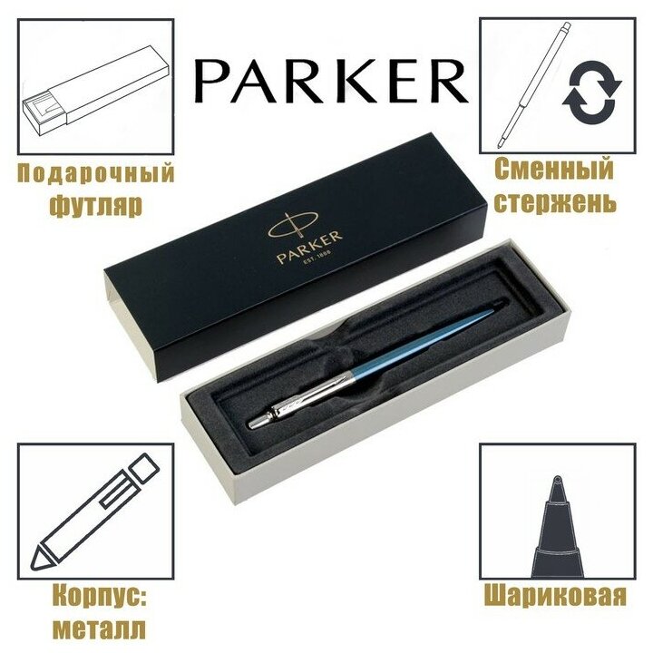 Parker Ручка шариковая Parker Jotter Core Waterloo Blue CT M, корпус из нержавеющей стали, голубой глянцевый/ хром, синие чернила