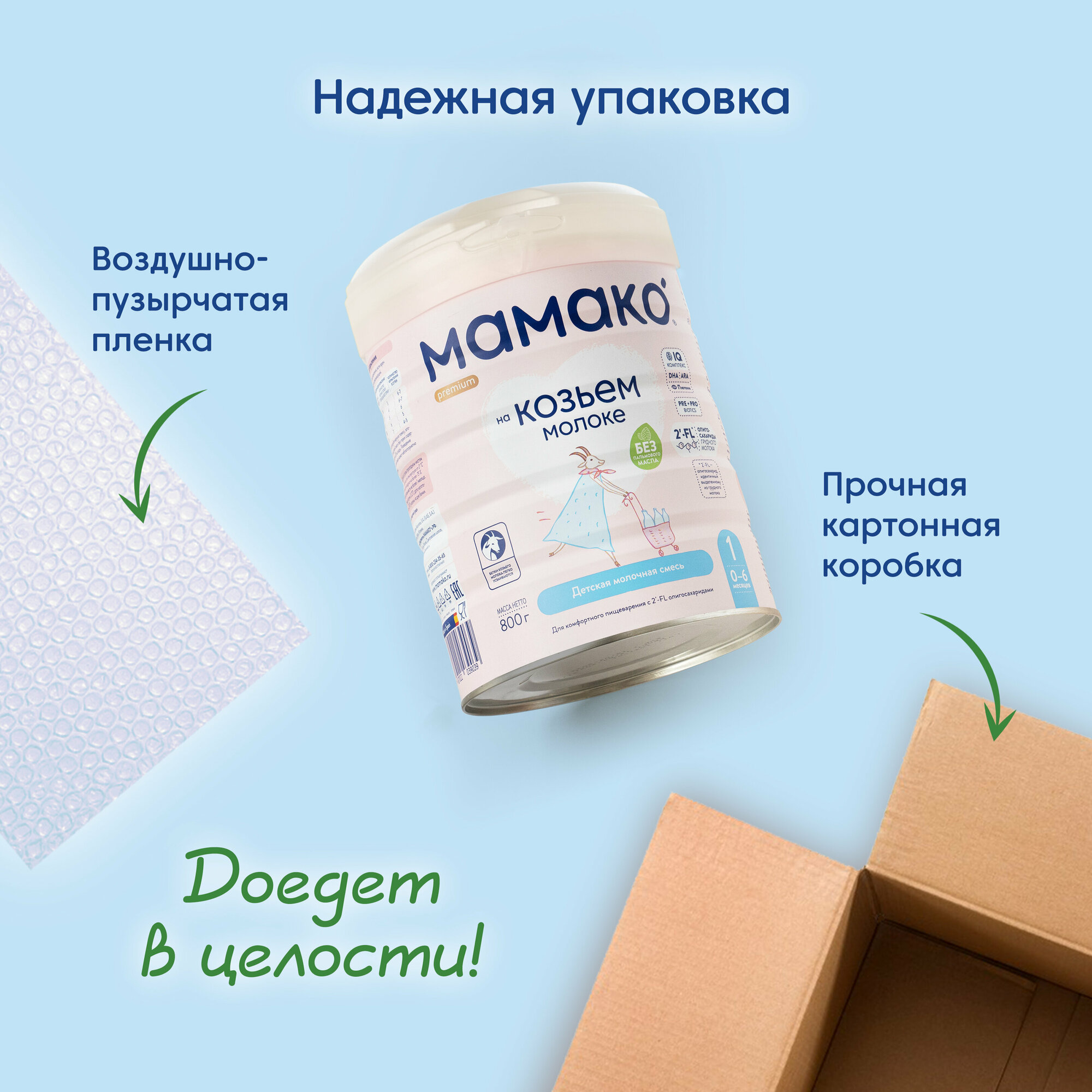 Мамако 1 Премиум - мол. смесь на основе козьего молока с олигосахаридами грудного молока , 0-6 мес., 800 г