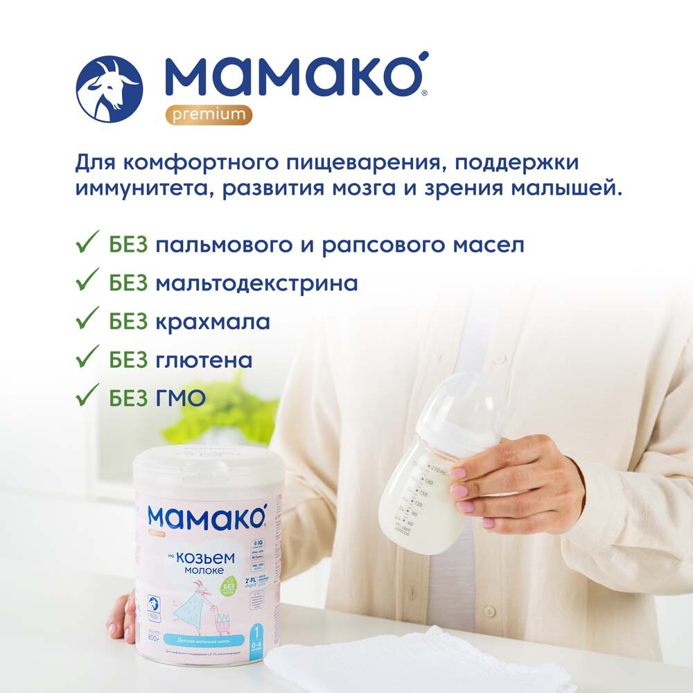 СохранитьСмесь мамако 1 Premium на осн. коз. мол. c ОГМ для дет. c рож. до 6 мес., 800г интересное: