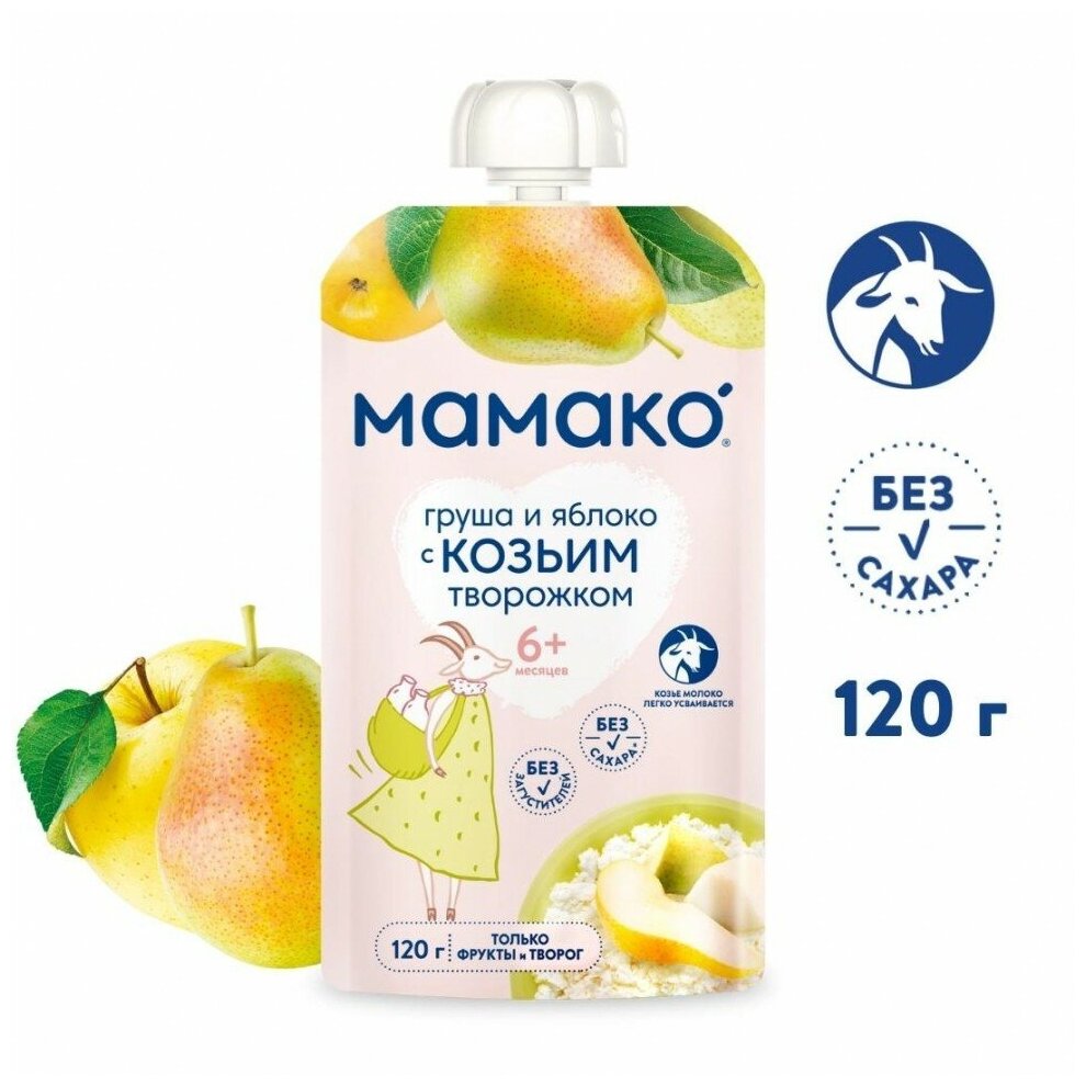 Пюре MAMAKO® «груша и яблоко с козьим творожком» с 6 мес. 120 гр интересное: