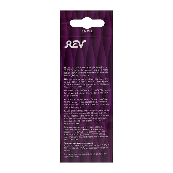 СохранитьЛампа светодиодная REV LED FILAMENT VINTAGE, ST64, E27, 5 Вт, 2700 K, теплый свет интересное: