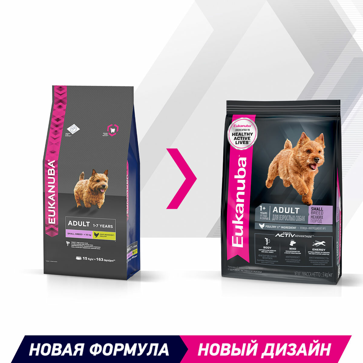 Корм Eukanuba Small Breed для собак малых пород, с домашней птицей, 3 кг