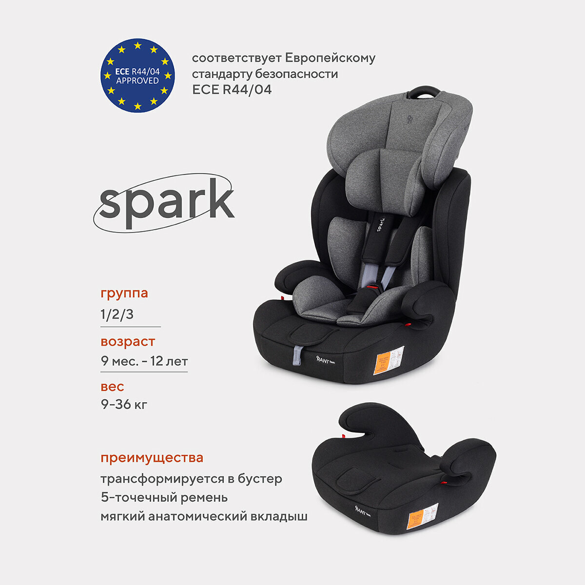 Купить Автокресло Rant ZY10 Spark basic Grey (группа 1-2-3 9-36 кг)