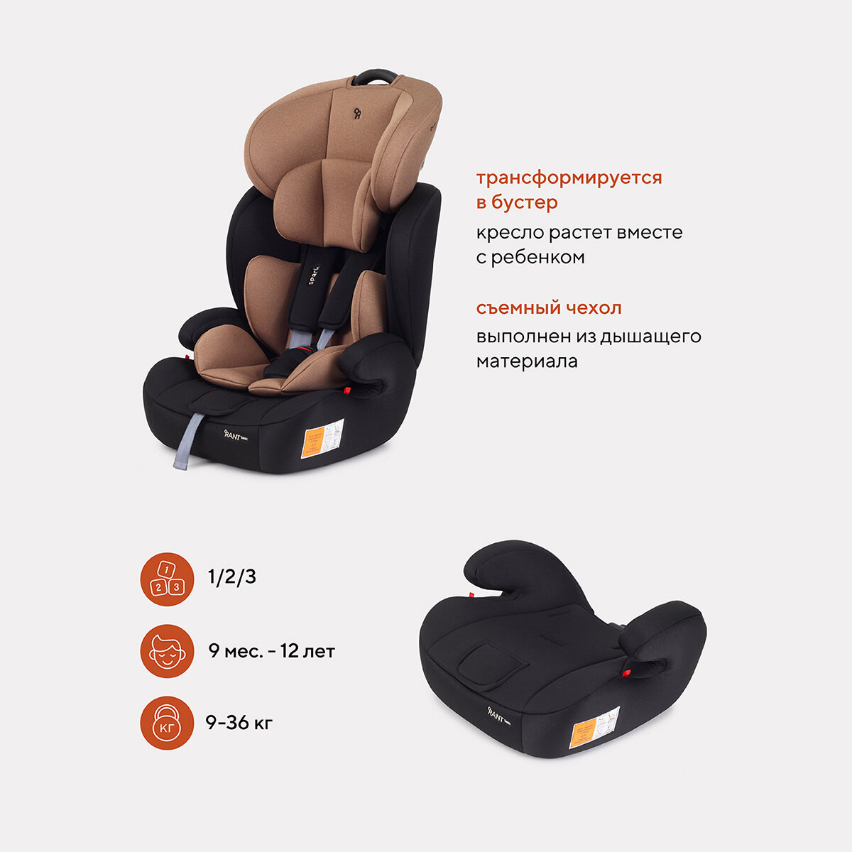 Купить Автокресло детское Rant basic Spark арт. ZY10, группа 1/2/3 от 9 мес. до 12 лет вес 9-36 кг рост 80-145 см, Beige