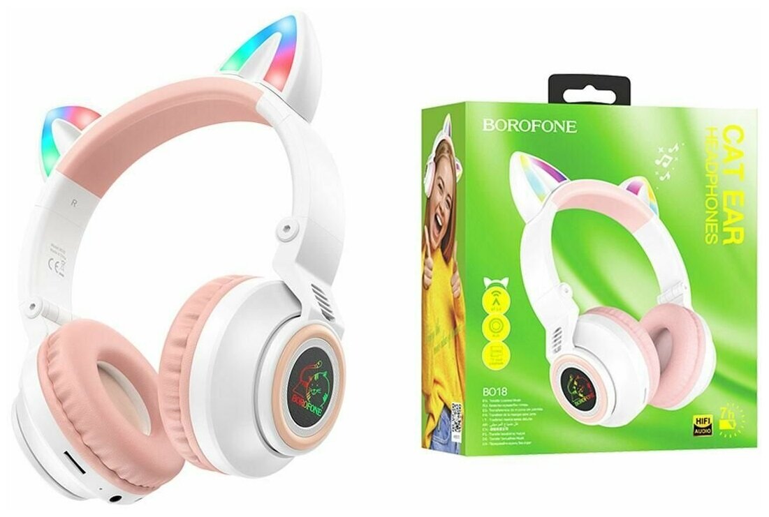 Bluetooth гарнитура BOROFONE BO18 Cat BT 5.0, 3.5 мм, MicroSD накладная (белый)