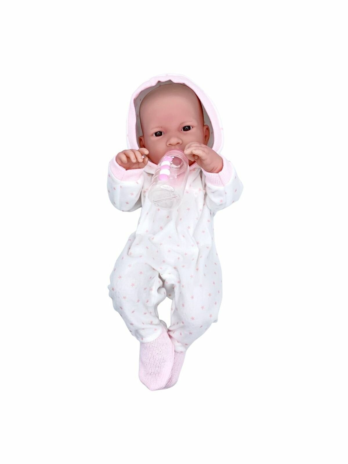 | Комплектация | - пупс в одежде; - одеялко; - соска; - больничный браслет; - мишка; - бутылочка; - погремушка; - свидетельство о рождении. |