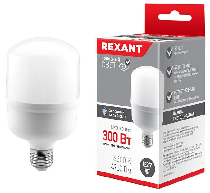 Ниже Вы можете прочитать отзывы на Светодиодная лампа Rexant LED High Power, 50 Вт, E27/E40, 6500 K, 4750 Лм (переходник на E40 в комплекте), ознакомится с подробными характеристиками, посмотреть интересные обзоры и фотографии на Светодиодная лампа Rexant LED High Power, 50 Вт, E27/E40, 6500 K, 4750 Лм (переходник на E40 в комплекте).