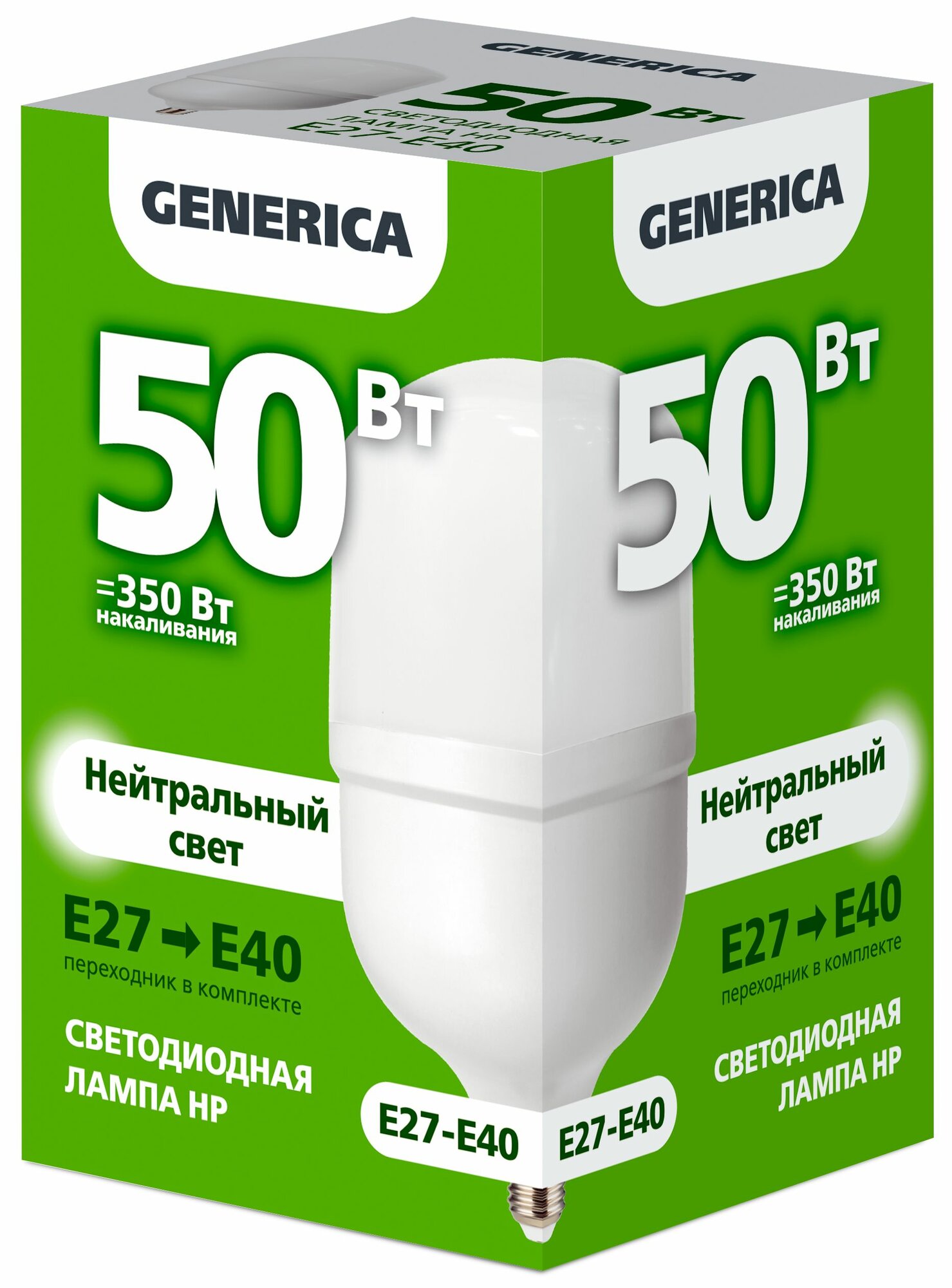 Лампа светодиодная HP 50Вт 4000К E27-E40 230В | код.LL-HP-50-230-40-E27-E40-G | GENERICA (2шт.в упак.)