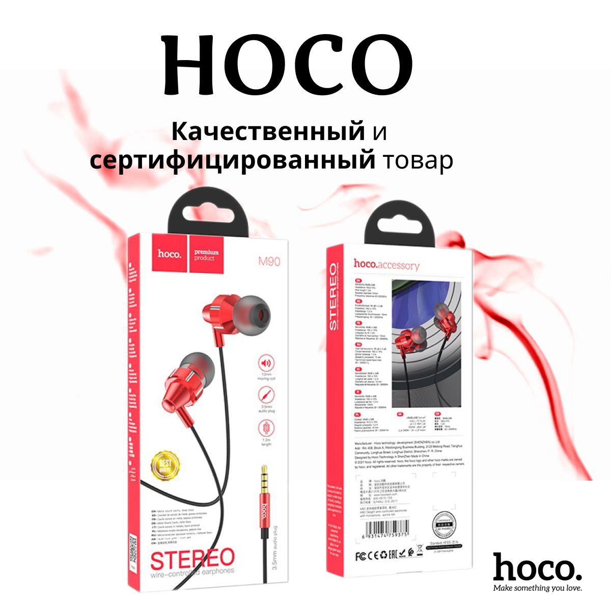Наушники M90 HOCO красные интересное: