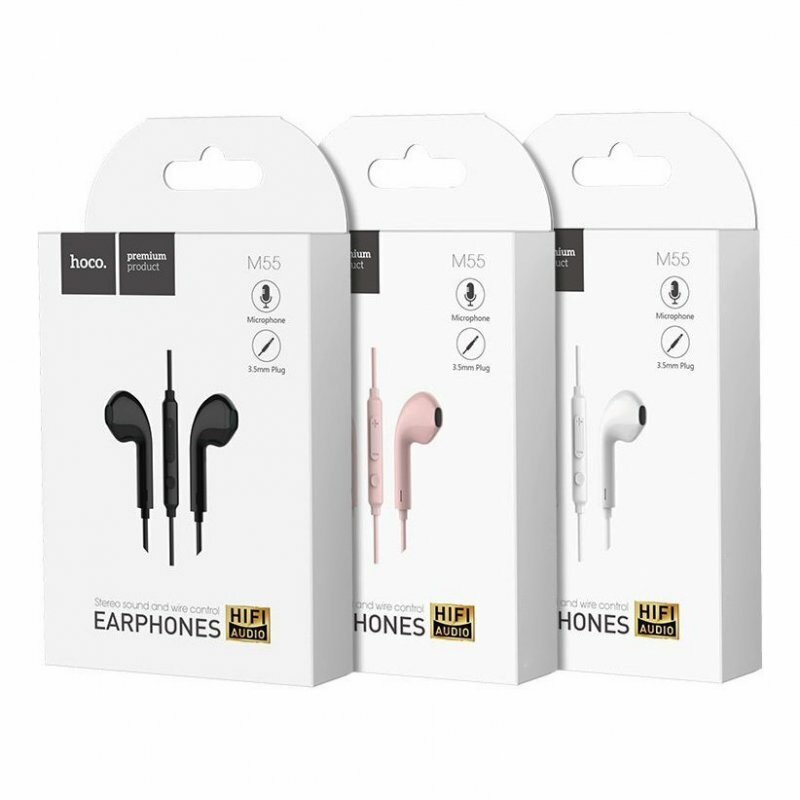 Наушники Hoco M55, проводные, вкладыши, микрофон, Jack 3.5, 1.2 м, черные