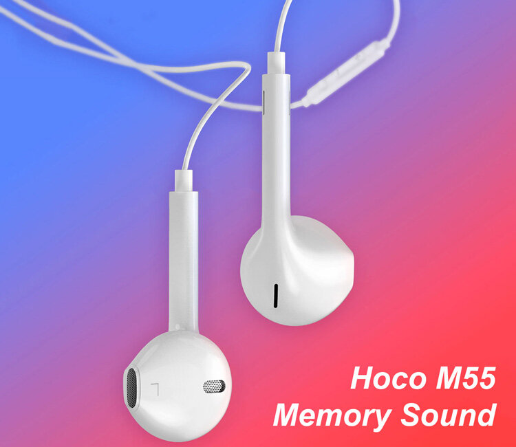 Гарнитура HOCO M55, Memory sound, микрофон, кнопка ответа, регулятор громкости, кабель 1.2м, цвет белый