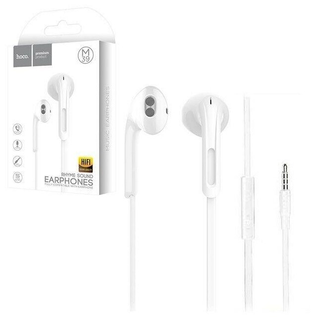 Купить Наушники hoco M39 Jack 3.5mm проводные/ белые / с микрофоном/ для музыки/подарок