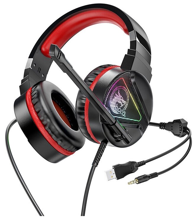 Hoco Наушники Hoco W104, игровые, полноразмерные, микрофон, USB + 3.5 мм, 2 м, черно-красные интересное: