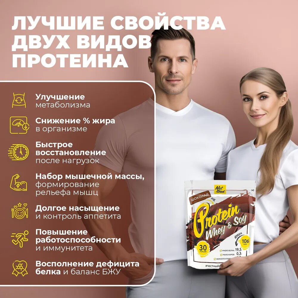 Протеин соевый и сывороточный NOTBAD Whey & Soy Protein, Шоколад, 1000 г