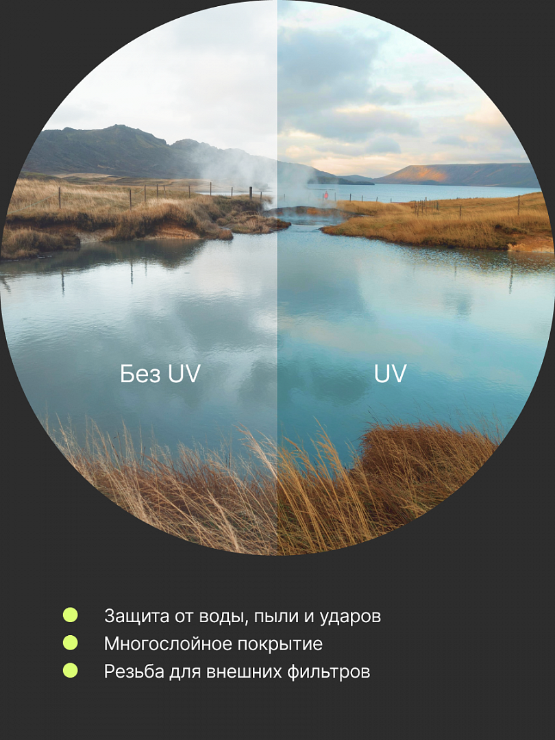 | Тип светофильтра | ультрафиолетовый / нейтрально-серый / поляризационный круговой |