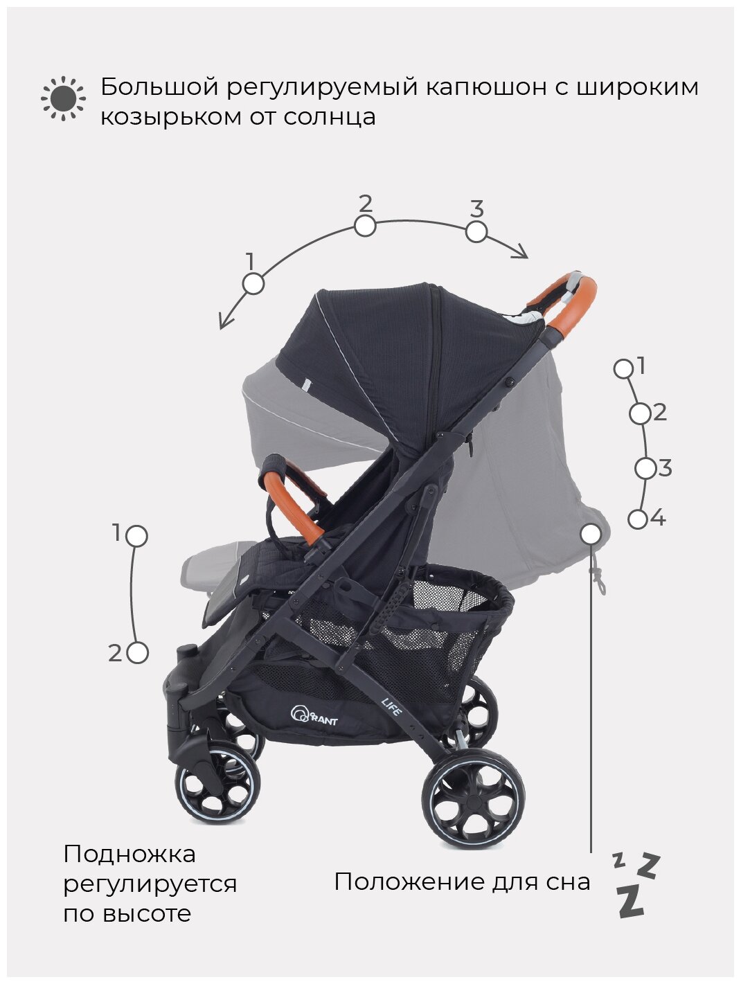 Коляска прогулочная детская Rant Life RA103, Midnight Black интересное: