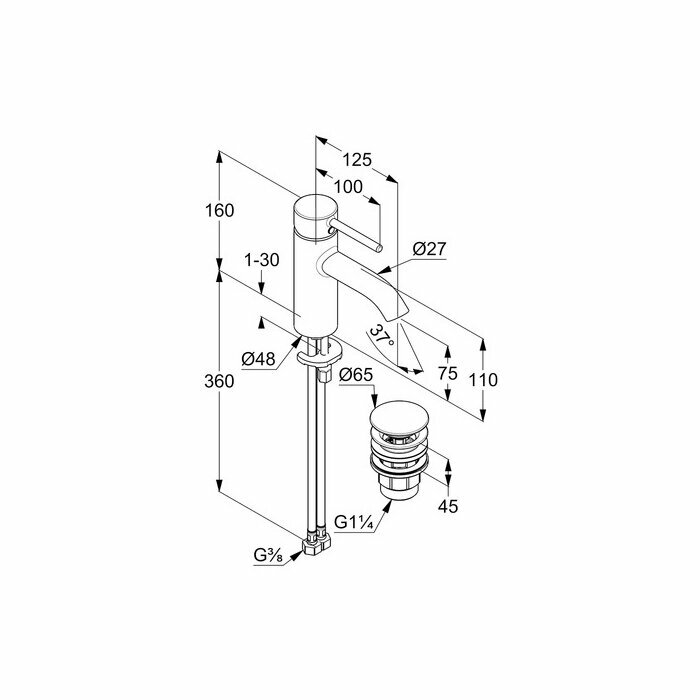 Смеситель для раковины Kludi Bozz с донным клапаном (382660576) интересное: