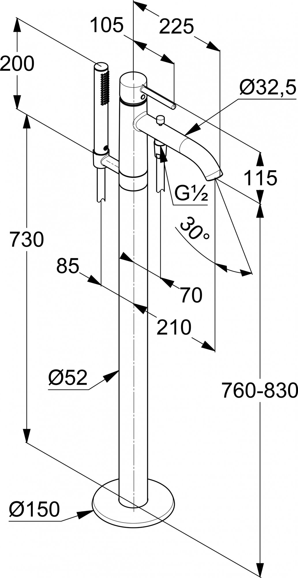 Смеситель для ванны Kludi Bozz напольный, внешняя часть, хром 385900576