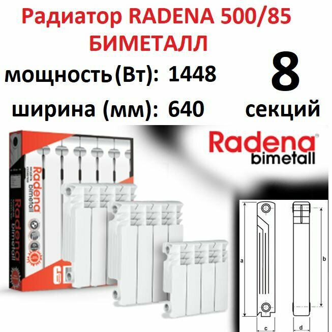 Радиатор биметалл RADENA BIMETALL- 500/100 (6 секций) Италия