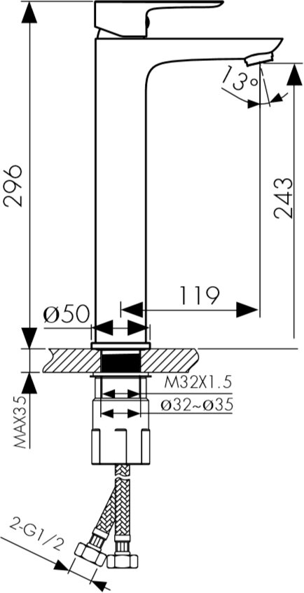 | Длина излива | 119 мм |