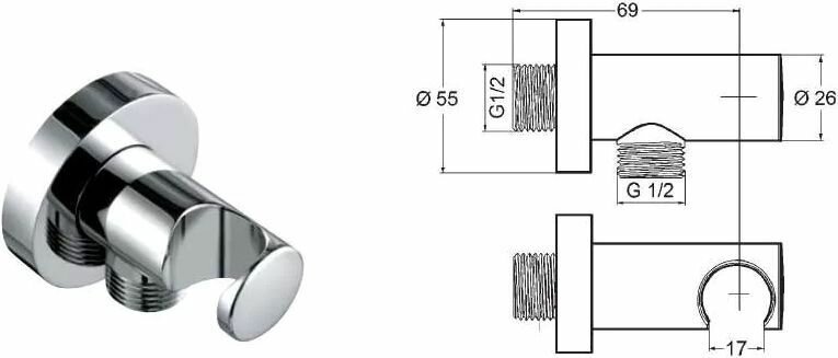 Смеситель для душа Kludi Zenta SL с гигиенической лейкой, хром (489980565)