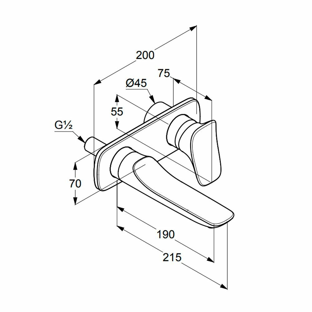 KLUDI AMBIENTA Однорычажный смеситель для умывальника для настенного монтажа, длина излива 186 мм, арт. 532440575