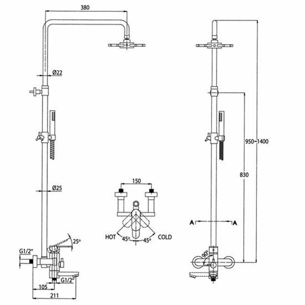 | Дополнительная информация | высота стойки для душа: 1400 мм |