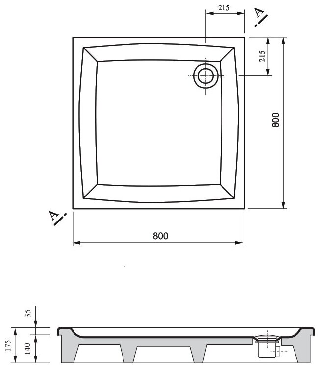 River Поддон для душа WEMOR 70/14 S квадратный 700*700*140 мм, с сифоном