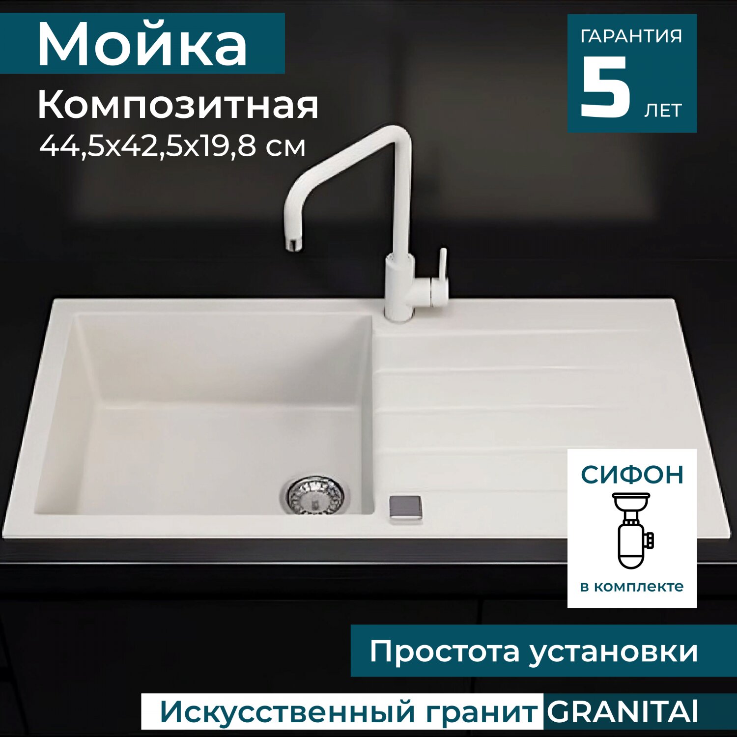 Кухонная мойка Alveus Granital Cadit 40 Arctic-G11 860х500х200 с сифоном, белая (1132027)